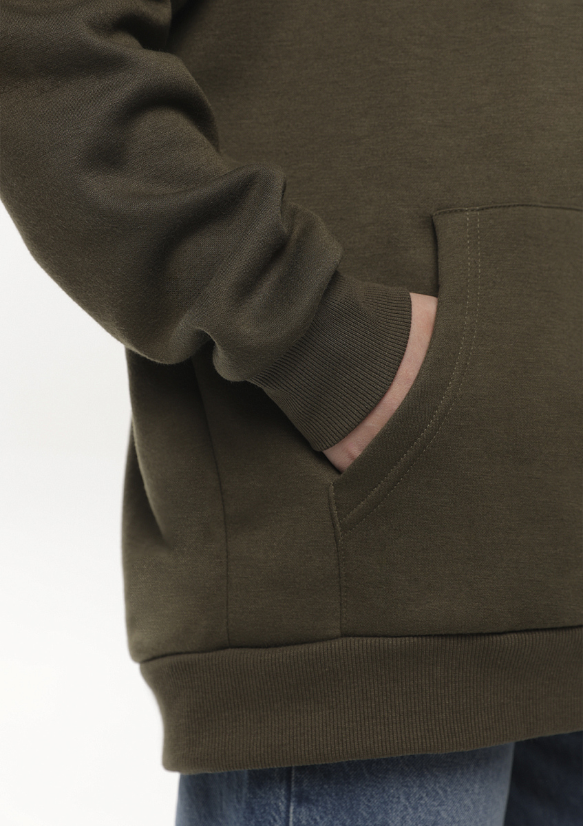 Толстовка выполнена из мягкого и плотного хлопкового футера 3-х нитка с фактурной изнанкой. Благодаря добавлению прочного эластичного полиэстера материал хорошо сохраняет форму и цвет.