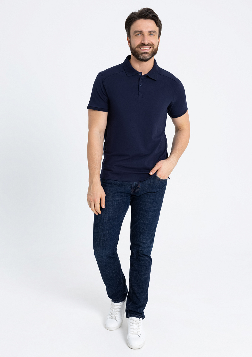 Размер мужской рубашки поло: XL/52. Параметры модели: рост 190 см.; обхват груди 108 см.; обхват талии 87 см.; обхват бедер 104 см.