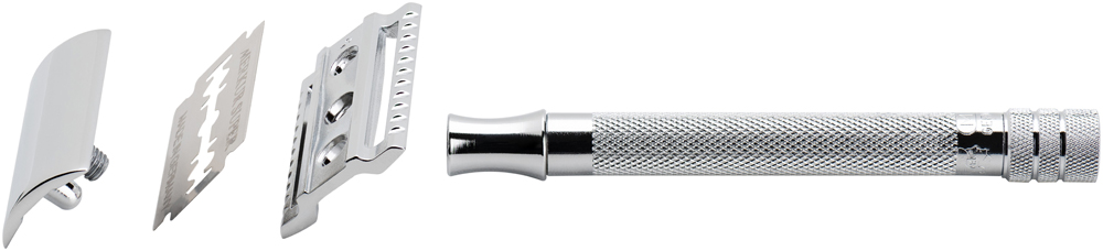 Станок Т-образный для бритья MERKUR 23C, глянцевое хромированное покрытие, прямой срез, закрытый гребень, длинная ручка, лезвие в комплекте (1 шт) можно заказать в нашей компании по самой доступной цене от рублей.
