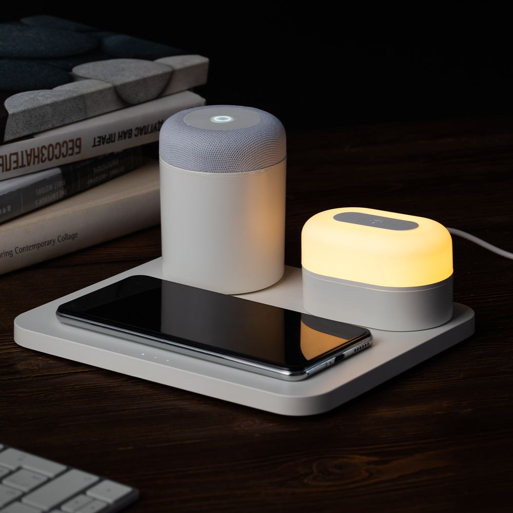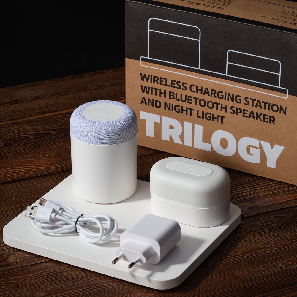 Станция беспроводной зарядки с колонкой и ночником Trilogy, белая можно заказать в нашей компании по самой доступной цене от 5 999 рублей.
