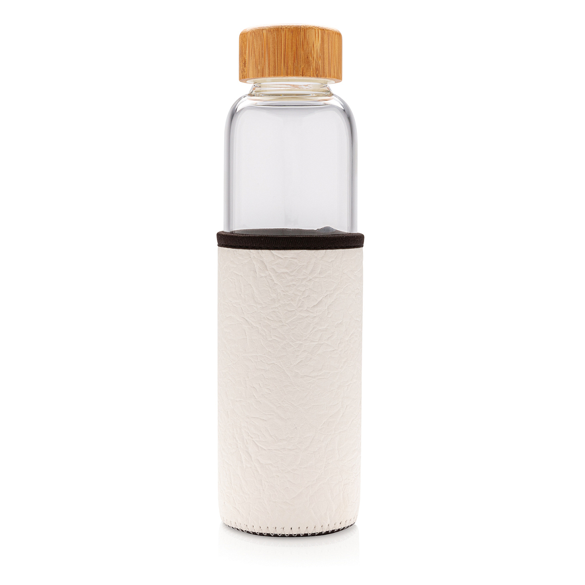 Стеклянная бутылка с текстурированным чехлом из PU идеально подойдет тем, кто не хочет пить из пластика. Стеклянная бутылка закрывается герметичной крышкой из бамбука. Широкое горлышко позволяет комфортно пользоваться бутылкой, а нескользящий чехол из PU защищает стекло от внешнего воздействия и добавляет стильный штрих. Объем 550 мл. Длина 7 см., ширина 7 см., высота 23,9 см., диаметр 7 см.