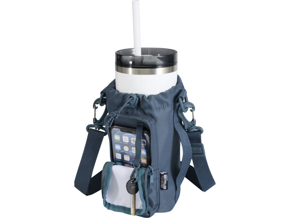 Дорожная сумка для бутылки Трип Эви из переработанных материалов— это практичное и легкое решение для поддержания водного баланса в пути. Изготовленная из полиэстера саржевого переплетения плотностью 290D с трикотажной основой и подкладкой из материала RPET плотностью 210D/PU, она отличается прочностью и продуманным дизайном. Основное отделение застегивается на шнурок и подходит как для больших бутылок с ручками, так и для бутылок меньшего размера, а заднее отверстие обеспечивает легкий доступ. Передний карман вмещает необходимые вещи, такие как телефон, а также оснащен внутренним выдвижным карманом и лентой для ключей. Регулируемый ремень и боковая ручка обеспечивают гибкие возможности переноски. Каждая сумка также поставляется с индикатором Aware™. Эта инновационная функция позволяет пользователям отслеживать происхождение и путь своего товара с помощью QR-кода, повышая прозрачность цепочки поставок и способствуя более прочной связи между продуктом и процессом его производства. Объем: 2 литра.