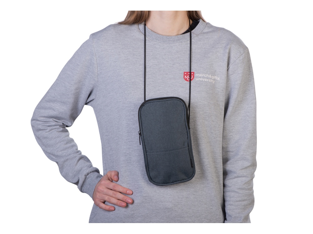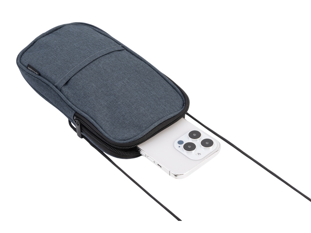 Мобильный чехол из полиэстера RPET. Основное отделение с застежкой-молнией. Внешний карман. В комплект входит шнурок для переноски. Длина шнурка 122 см.