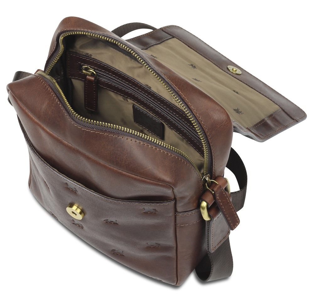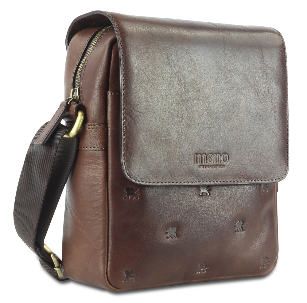 Сумка через плечо Mano "Don Leon", натуральная кожа в коричневом цвете, 20 х 25 х 8 см можно заказать в нашей компании по самой доступной цене от 18 340 рублей.