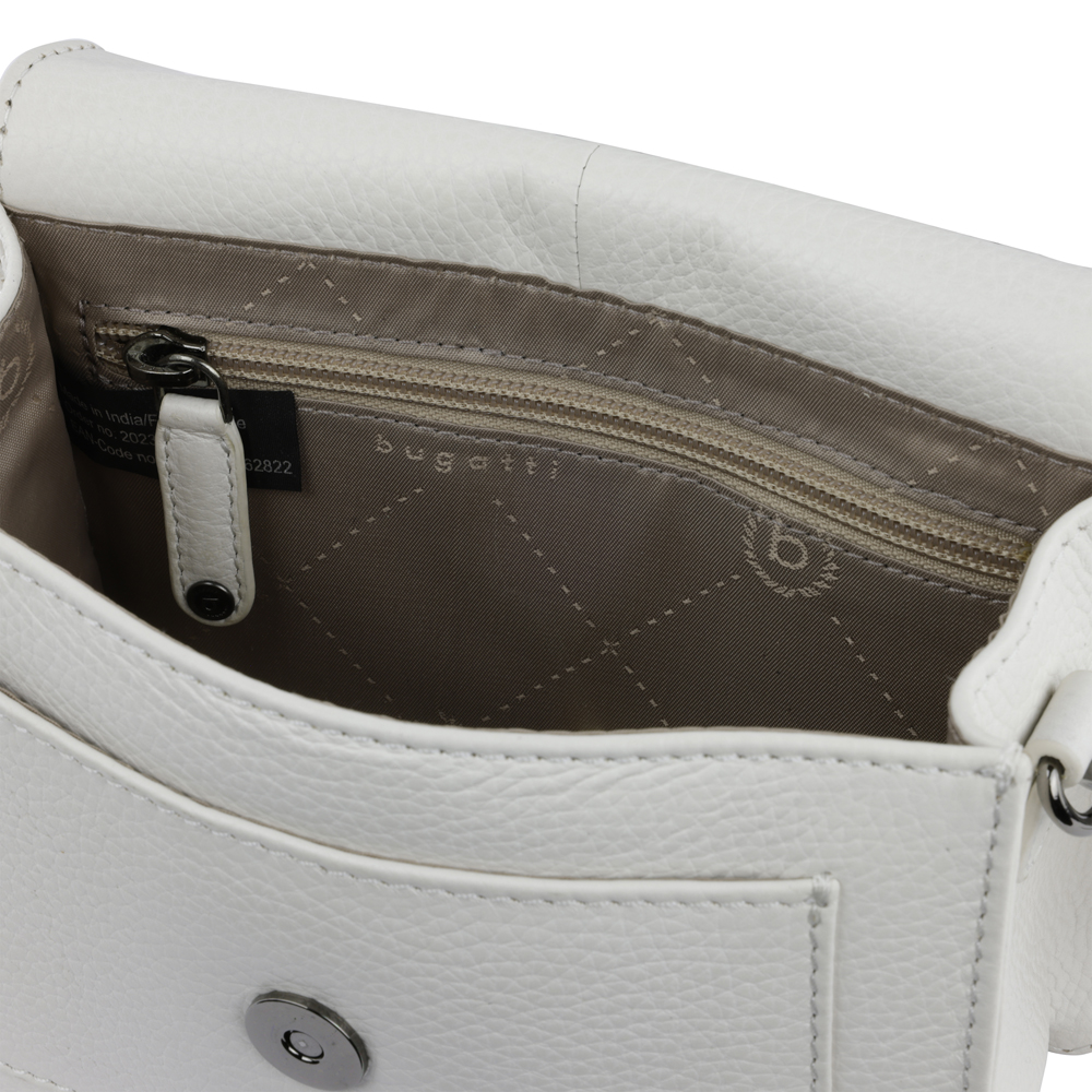 Сумка через плечо женская BUGATTI Elsa, белая, воловья кожа/полиэстер, 18,5х8,5х14,5 см можно заказать в нашей компании по самой доступной цене от 10 140 рублей.