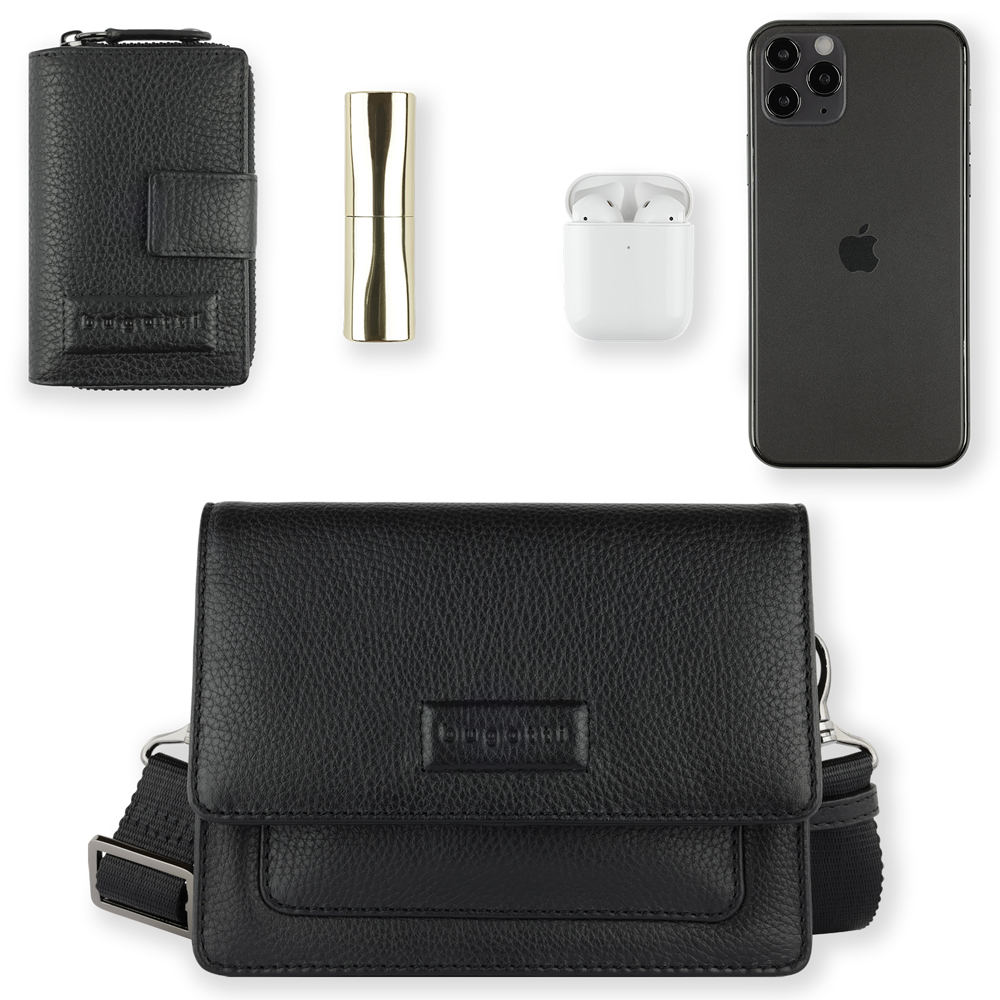 Сумка через плечо женская BUGATTI Elsa, чёрная, воловья кожа/полиэстер, 18,5х8,5х14,5 см можно заказать в нашей компании по самой доступной цене от 10 140 рублей.