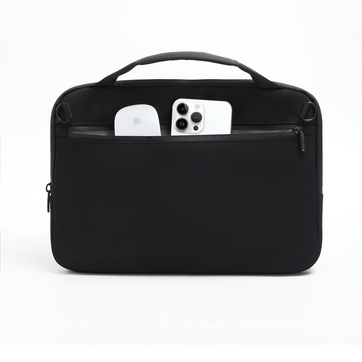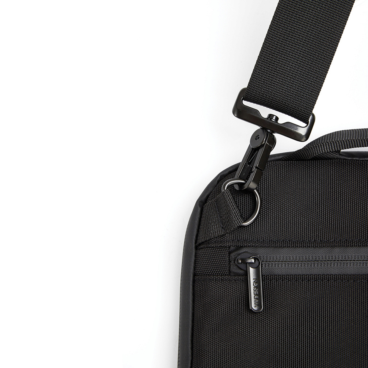 Сумка для ноутбука от XD Design станет надежным спутником, куда бы вы ни отправились. Это настоящее воплощение стиля и функциональности. Она изготовлена из переработанных пластиковых бутылок с водоотталкивающим покрытием, поэтому вашей технике не страшны ни дождь, ни снег. Внутри — мягкая подкладка из приятного на ощупь флиса, которая гарантирует безопасность ноутбуку. Несмотря на компактные размеры, в сумку поместятся зарядные устройства, мышь и необходимые в поездке вещи. На задней стороне есть дополнительный карман, а удобный плечевой ремень можно снять при необходимости. Сумка подходит для ноутбуков диагональю до 16’’. Сертифицировано AWARE™. Наличие индикаторных частиц AWARE™ подтверждает, что мы действительно используем переработанные материалы. 2% с продажи каждой вещи, отмеченной сертификатом AWARE™, мы перечисляем в поддержку всемирной организации Water.org. Длина 39,5 см., ширина 2,5 см., высота 27 см., диаметр 0 см.