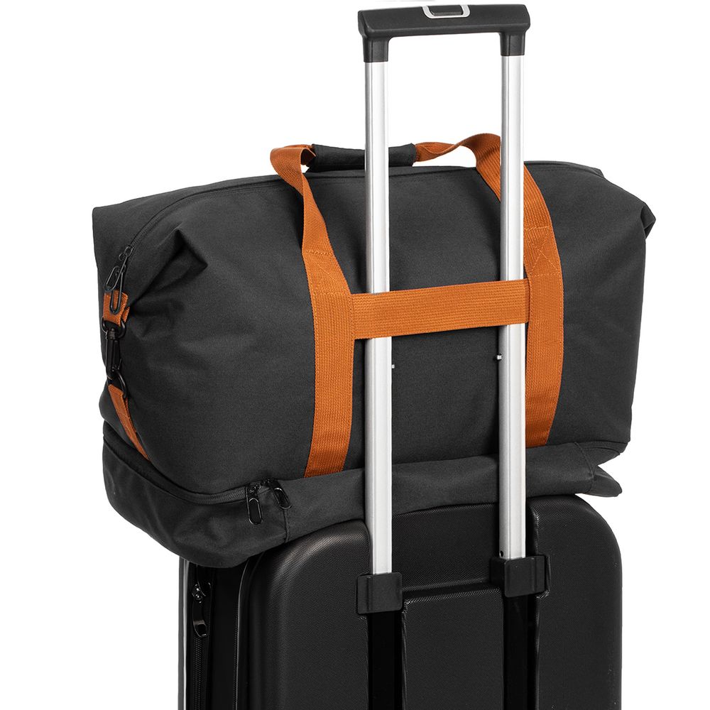 Дорожная сумка Incluso — надежный спутник в краткосрочной поездке, будь то командировка или выезд на уикенд. Также она с легкостью станет незаменима для спортзала. Изготовлена из прочного материала, оснащена удобными ручками и регулируемым плечевым ремнем, что обеспечивает комфорт при переноске. В сумке предусмотрено специальное отделение для обуви.