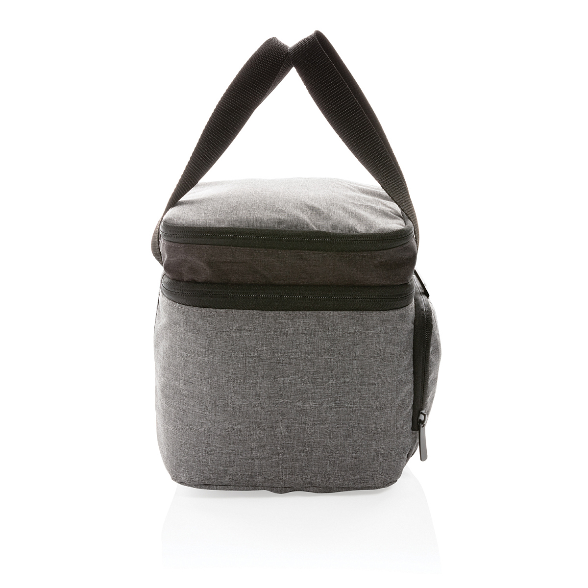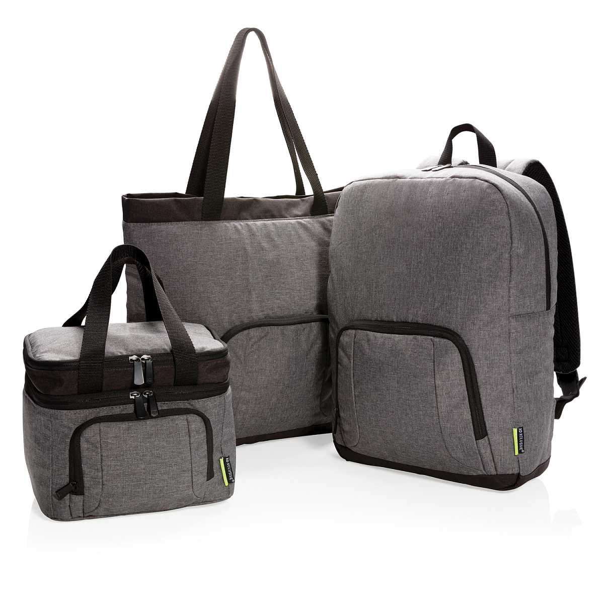 Стильная сумка-холодильник из RPET благодаря своему большому основанию позволяет разместить упакованные блюда и контейнеры, а также вмещает до 8 банок. Просто положите свои сэндвичи в верхнее отделение на молнии, и вы готовы к выходу! В сумке-холодильнике есть герметичный, простой в уходе вкладыш. Сделана из переработанного материала RPET. Зарегистрированный дизайн® Длина 26 см., ширина 20 см., высота 19,5 см., диаметр 0 см.