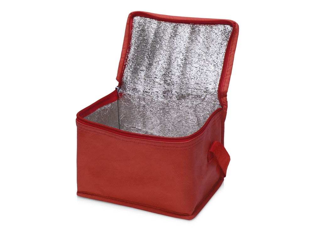 Сумка-холодильник из переработанного пластика. Вмещает 6 банок по 0.33 л. Закрывается на молнию. Удобная ручка для переноски.