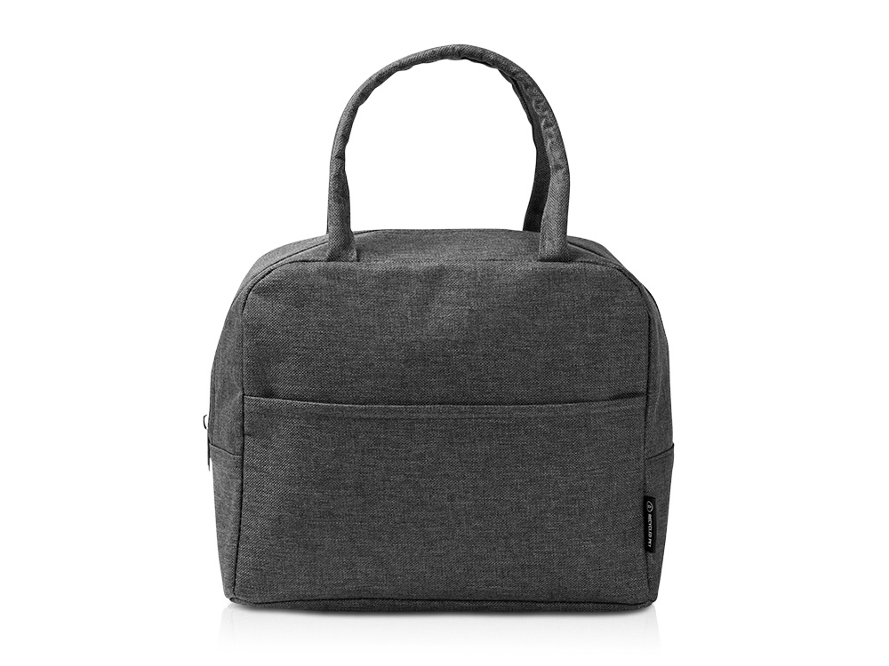 Термосумка из переработанного ПЭТ плотностью 600D с изотермической внутренней поверхностью. Передний карман и мягкие круглые ручки.