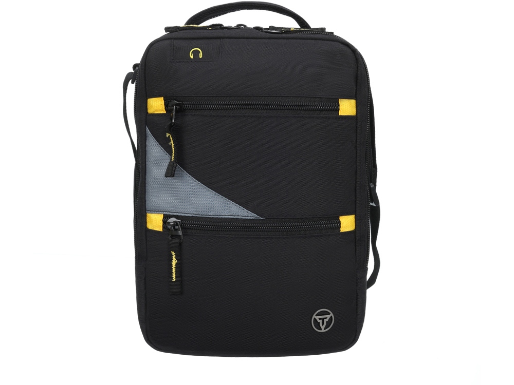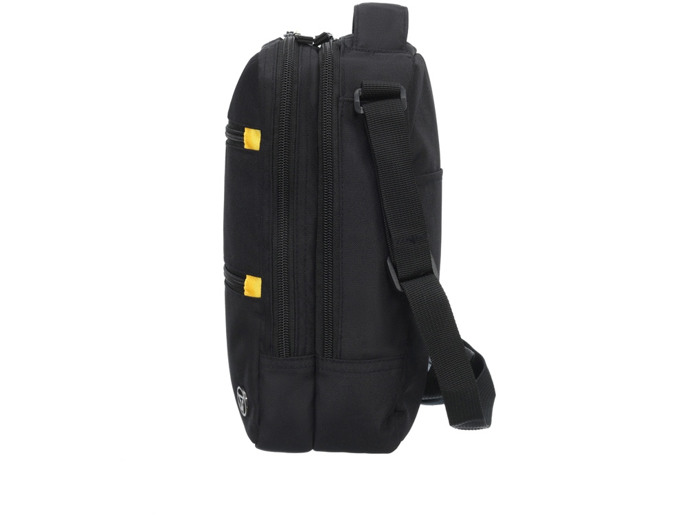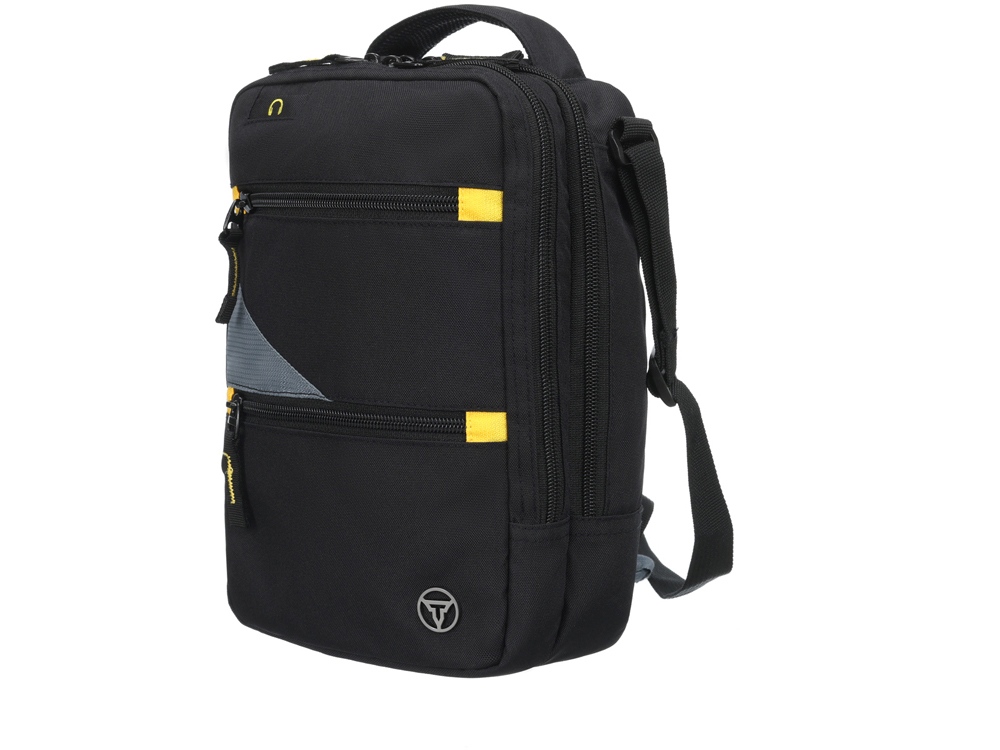 Сумка через плечо TORBER предназначена для безопасной транспортировки деловой документации и электронных гаджетов. Сумка в чёрном цвете с серыми и желтыми акцентами элегантно смотрится в городских условиях.
