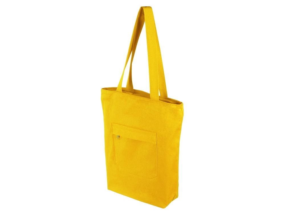 Преимущество этой сумки в наличии застежки молнии на основном отделении - ее содержимое остается закрытым. Донная складка увеличивает вместимость. Снаружи расположен карман на молнии. Парусиновые ручки в тон сумки.