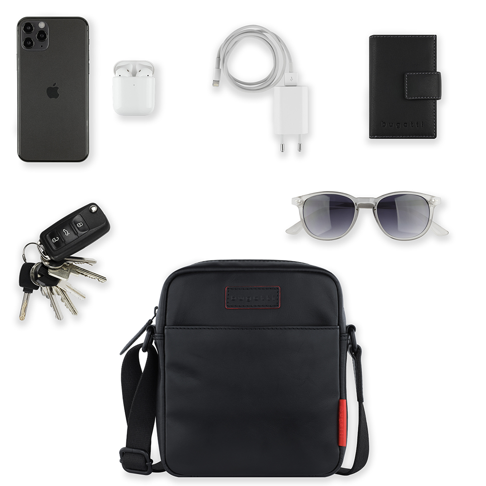 Сумка наплечная мужская BUGATTI Clark, чёрная, воловья кожа/полиэстер, 18х5,5х20 см, 2 л можно заказать в нашей компании по самой доступной цене от 12 550 рублей.