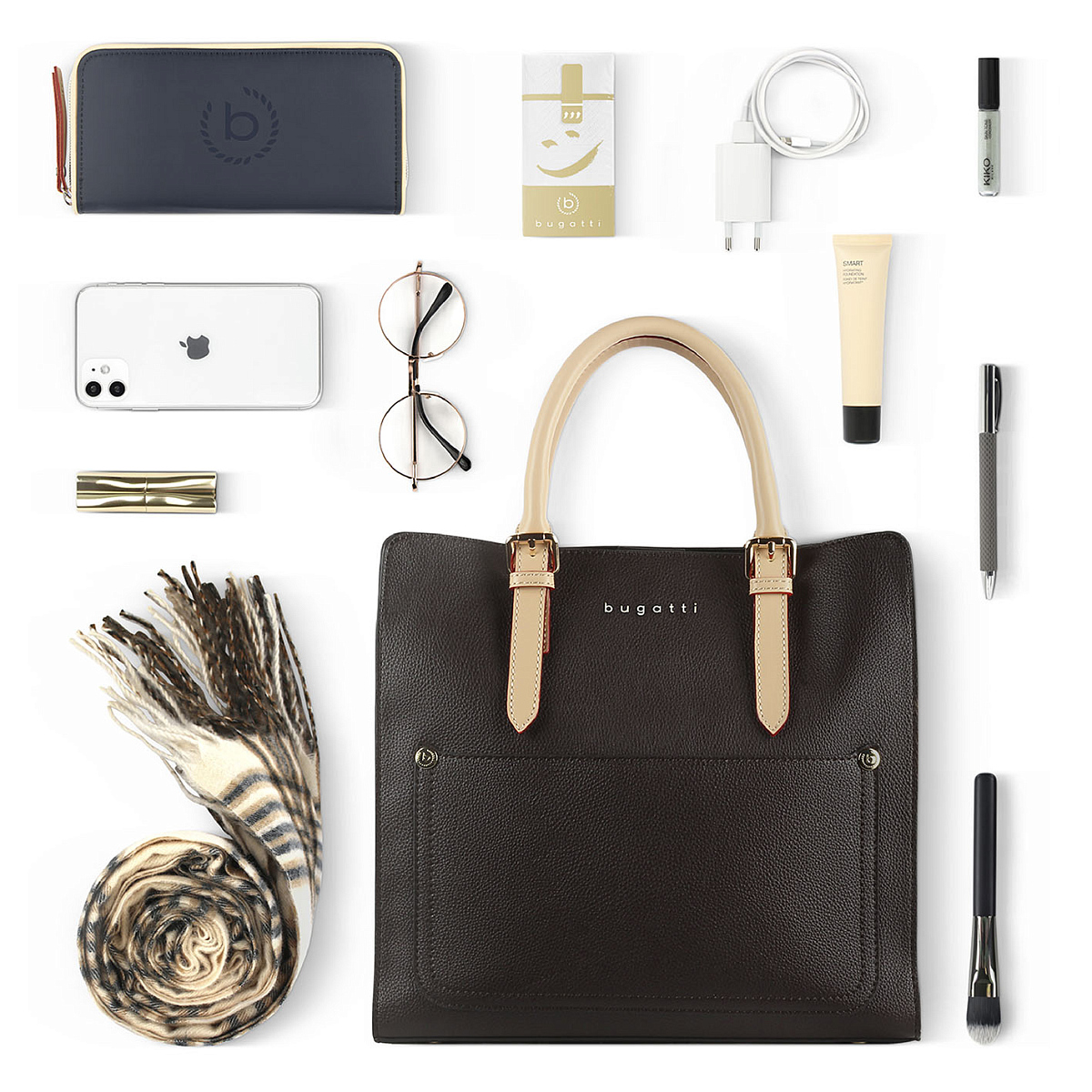 Сумка-портфель женская BUGATTI Ella, тёмно-коричневая, полиуретан, 30х11,5х28 см можно заказать в нашей компании по самой доступной цене от 13 610 рублей.