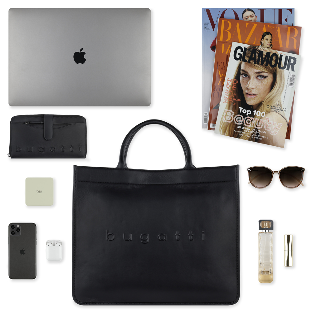 Сумка-тоут женская BUGATTI Daphne, чёрный цвет, воловья кожа/полиэстер, 41х15х34,5 см можно заказать в нашей компании по самой доступной цене от 43 240 рублей.