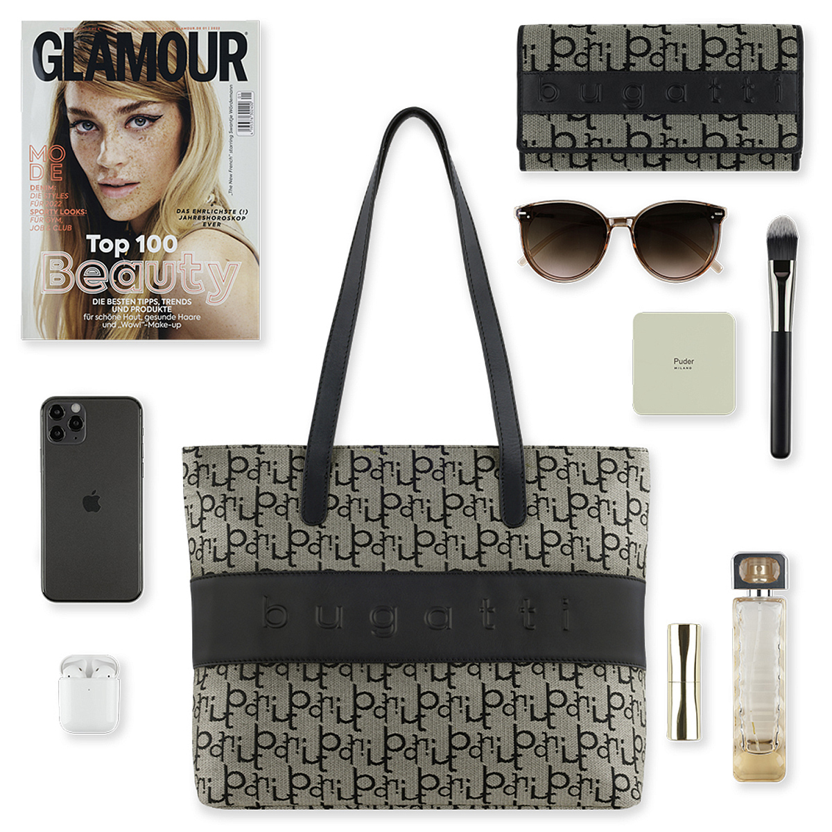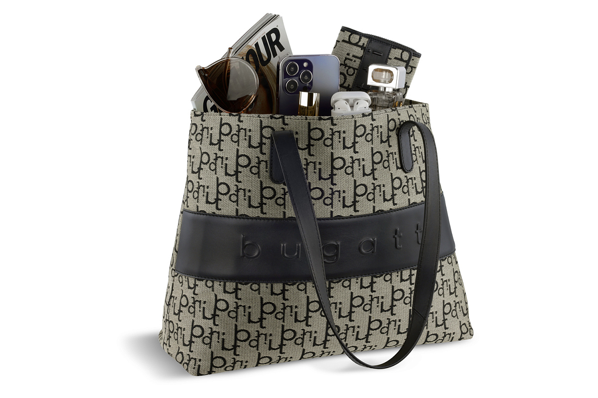 Сумка женская BUGATTI Elea, бежево-черный цвет, жаккард/воловья кожа/полиэстер, 34х12х29 см можно заказать в нашей компании по самой доступной цене от 13 420 рублей.