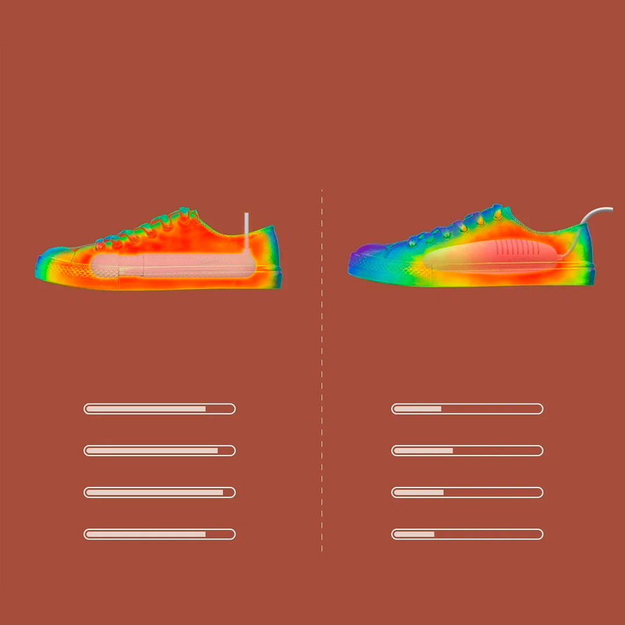 Особенности: раздвижная конструкция; от 170 до 209 мм; Loop может подстроиться под обувь для взрослых почти любого размера (примерно от 28 до 45 размера); обладает четырьмя PTC генераторами; интеллектуальный контроль температуры