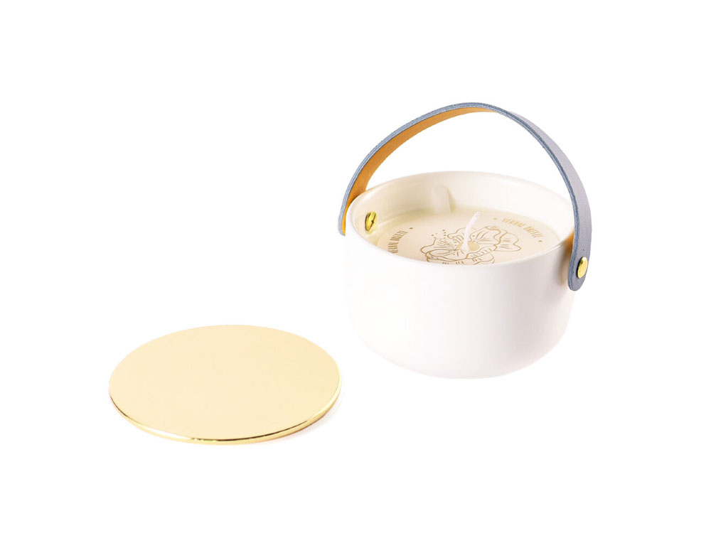 Стильная свеча в фарфоровом кашпо с крышкой и кожаными ручками от Valerie Concept. Изготовлена из натурального соевого воска с хлопковым фитилем, подарит вам долгие часы наслаждения и умиротворения, благодаря нежному аромату с нотками чарующих цветов и хлопка.