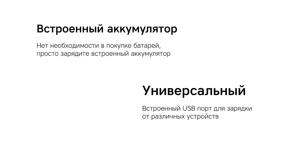 Особенности: встроенный аккумулятор; 3 режима работы; компактный дизайн; металлический корпус; зарядка от USB