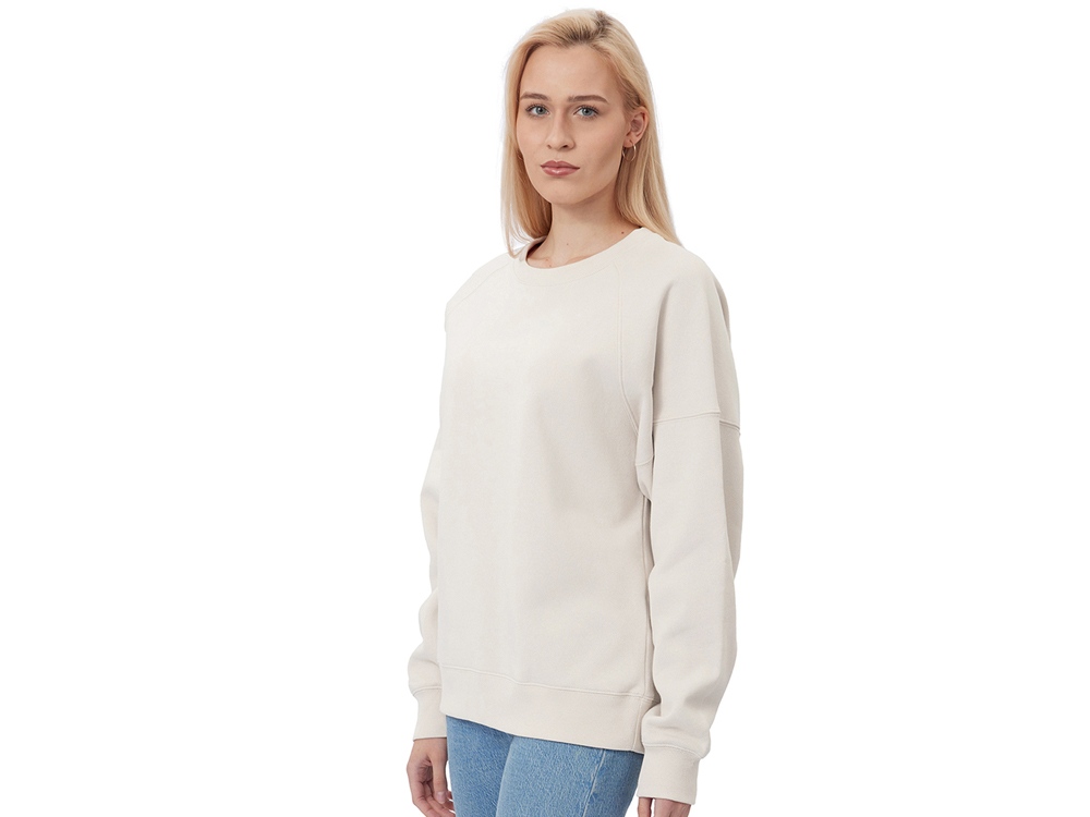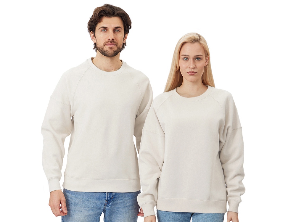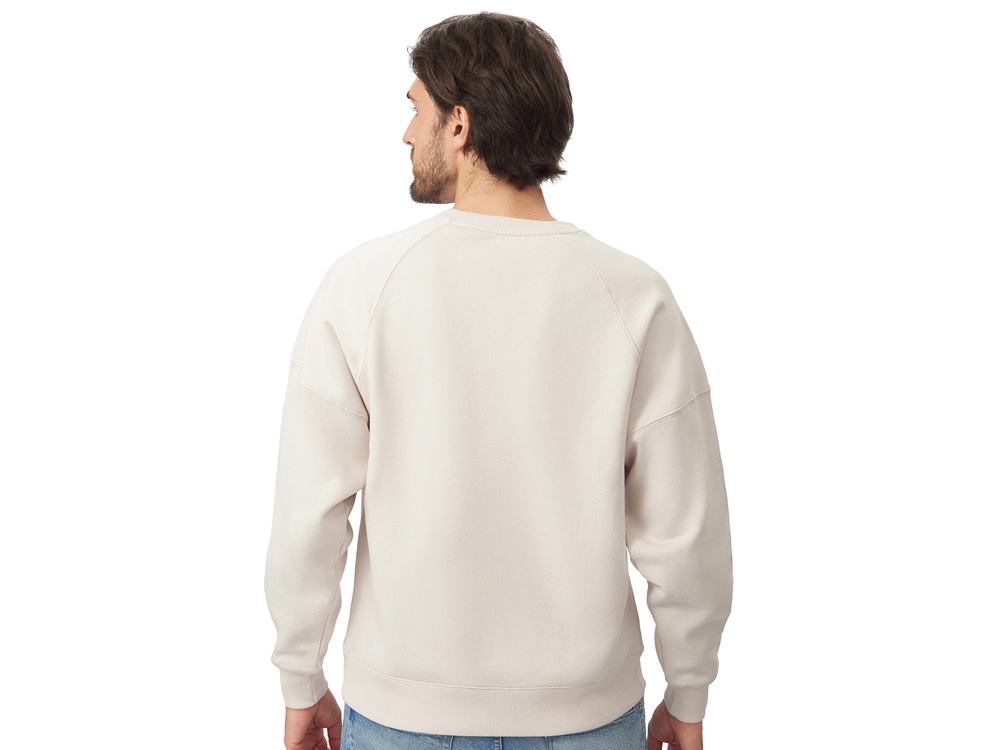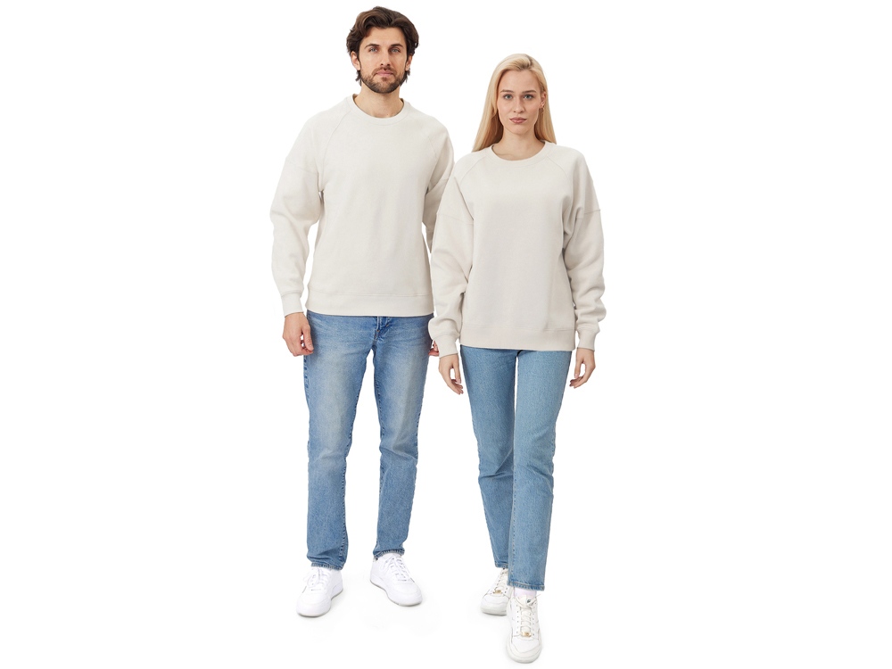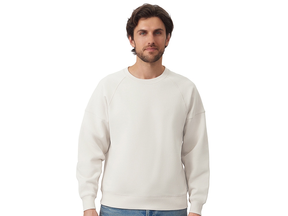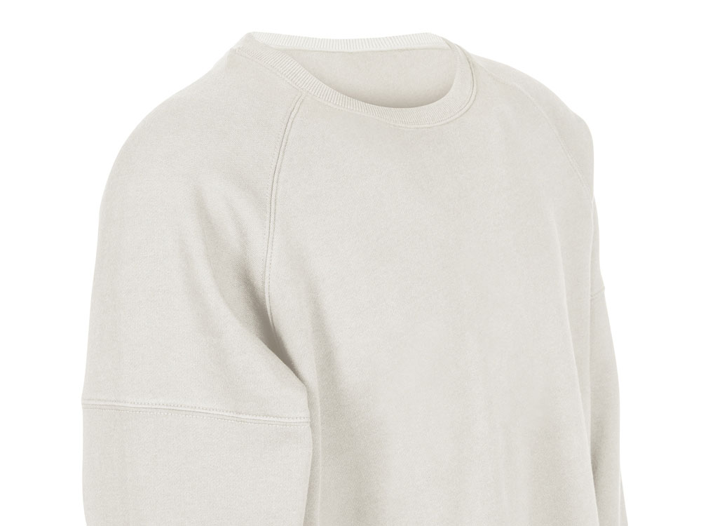 Главная особенность этого свитшота оверсайз — необычный рукав из двух частей: верхней — реглан до середины предплечья — и нижней, которая заканчивается резинкой. Благодаря такому необычному крою свитшот сидит комфортно по фигуре.