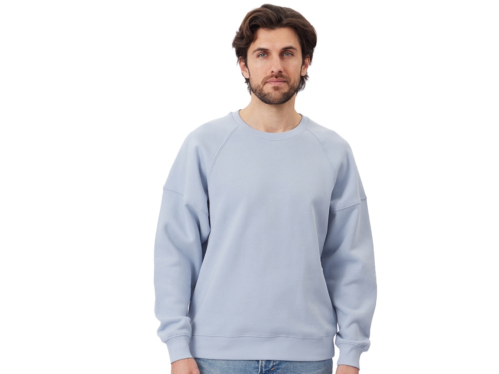 Главная особенность этого свитшота оверсайз — необычный рукав из двух частей: верхней — реглан до середины предплечья — и нижней, которая заканчивается резинкой. Благодаря такому необычному крою свитшот сидит комфортно по фигуре.