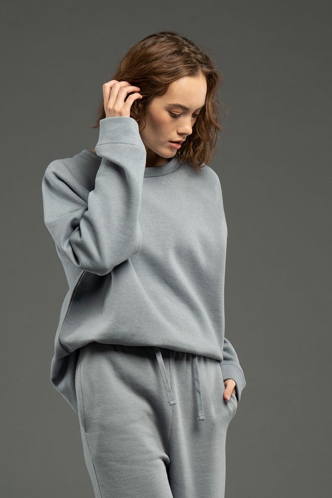 Свитшот унисекс свободной посадки со спущенным плечом.