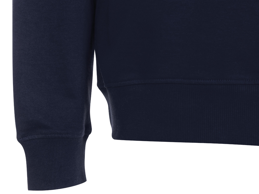Горловина, низ и манжеты отделаны рибом 2х2. Горловина дополнительно усилена тесьмой по внутренней стороне спинки, кроме того, низ и манжеты имеют дополнительную отстрочку для сохранения формы изделия в течение всего срока носки.