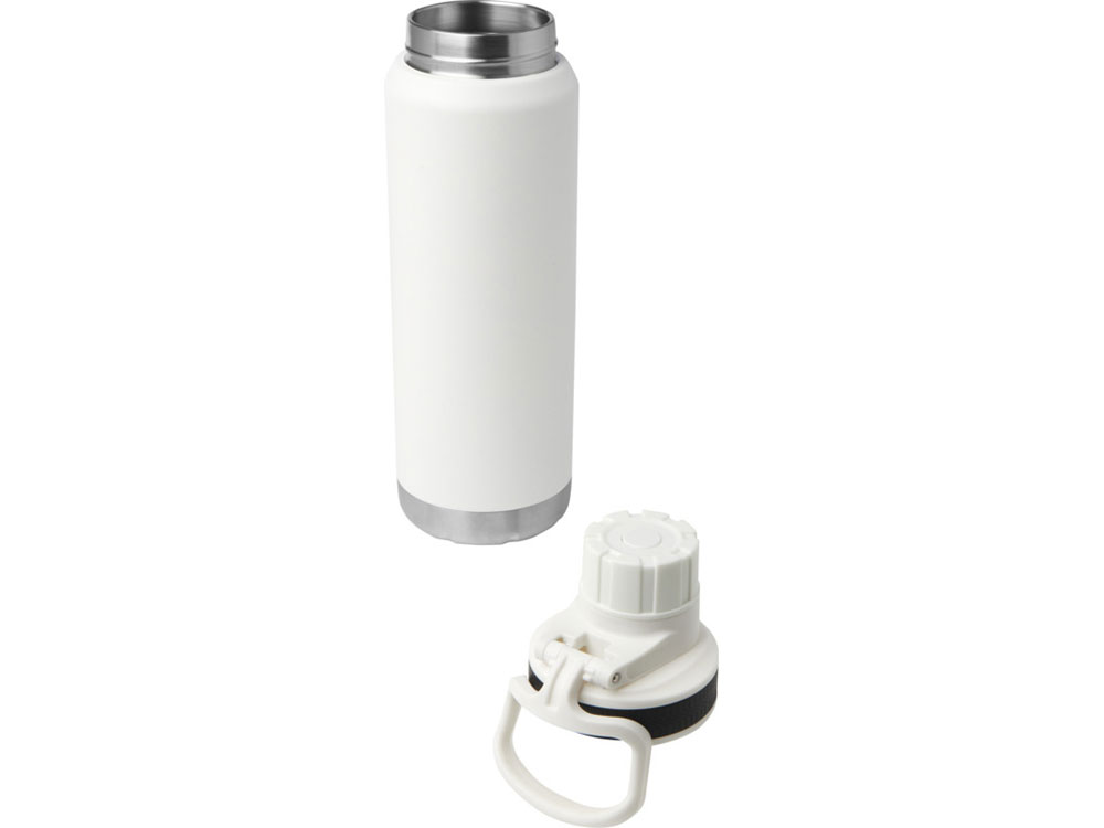 Бутылка из нержавеющей стали с двойными стенками и медной вакуумной изоляцией с навинчивающейся крышкой с защитой от протеканий, сертифицированная по стандарту RCS. Оснащена широким отверстием для легкого наполнения и чистки, а также удобной ручкой для переноски, встроенной в крышку. Подходит для газированных напитков. Прочное порошковое покрытие снаружи. Поставляется в подарочной коробке из переработанного картона. Объем: 700 мл.