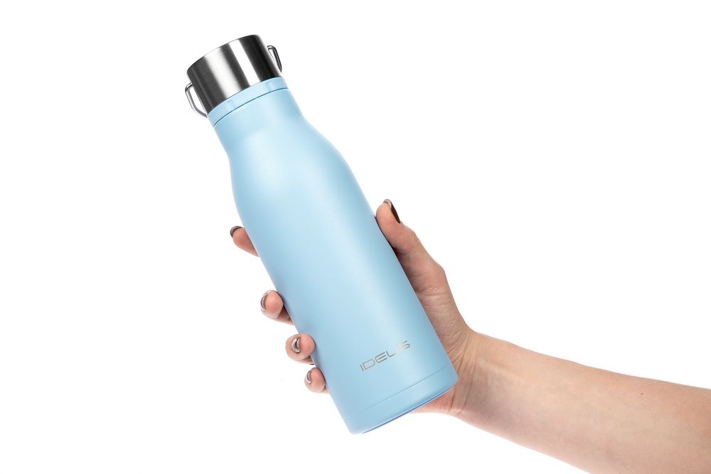 - Конструкция с двойными стенками и вакуумной изоляцией сохраняет содержимое холодным до 24 часов, горячим — до 8 часов