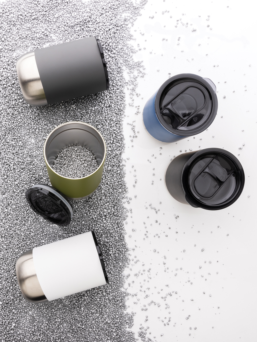 Стильная термокружка из переработанной нержавеющей стали позволяет сохранить ваши любимые напитки горячими до 3-х и холодными до 6 часов. Крышка удобно открывается и закрывается одним движением, что позволяет избежать случайного проливания. Переработанные материалы сертифицированы по стандарту RCS (Recycled Claim Standard), что гарантирует полный контроль всей цепочки поставок. Содержание вторичных материалов: 76% от общего веса изделия. Не содержит BPA. Поставляется в крафтовой коробке, сертифицированной FSC®. Объем 360 мл. Длина 8,4 см., ширина 8 см., высота 12,4 см., диаметр 8 см.