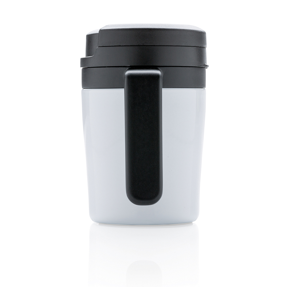 Высота кофейной термокружки Coffee-to-go составляет всего 8 см, поэтому она идеально подойдет для любой кофе-машины. Кружка изготовлена из нержавеющей стали, а удобная ручка, крышка с поворотным механизмом и внутренняя колба - из высококачественного полипропилена. Не подходит для мытья в посудомоечной машине. Объем термокружки составляет 160 мл. Зарегистрированный дизайн® , высота 10 см., диаметр 7 см.