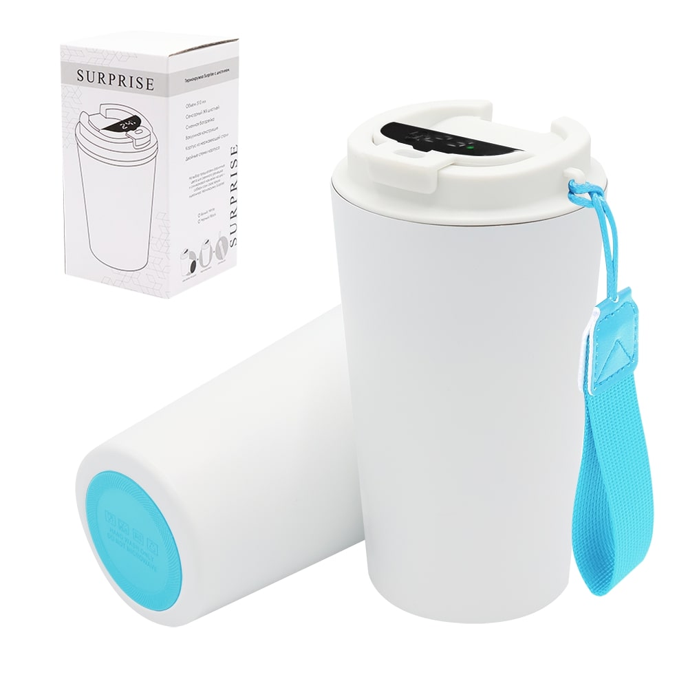 Термокружка Surprise To Go с индикатором, белая/бирюзовая можно заказать в нашей компании по самой доступной цене от 1 288.89 рублей.