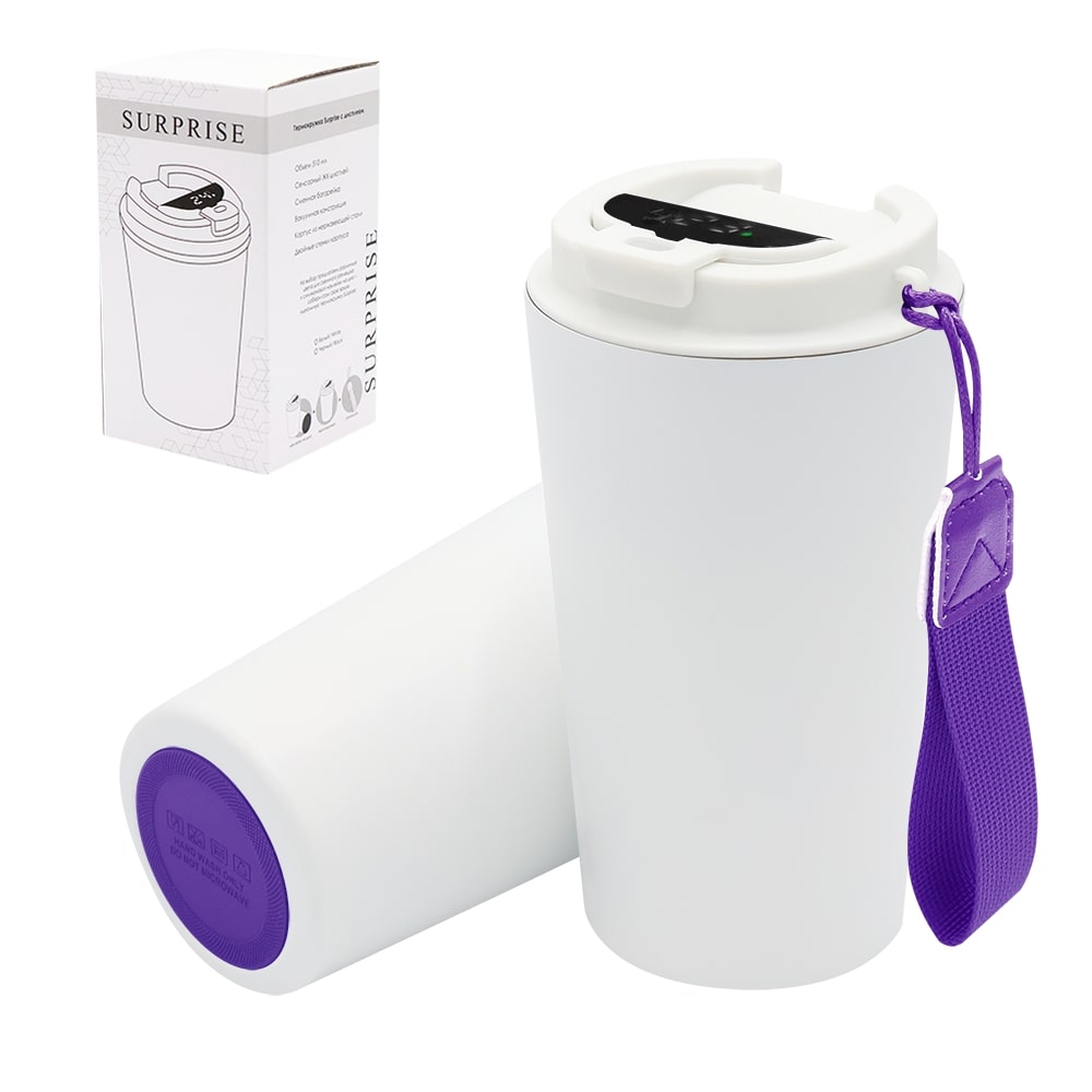 Термокружка Surprise To Go с индикатором, белая/фиолетовая можно заказать в нашей компании по самой доступной цене от 1 288.89 рублей.