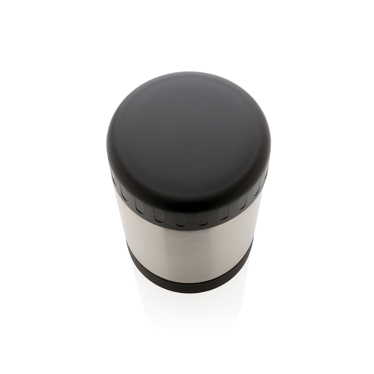 Герметичный вакуумный контейнер для еды сохранит температуру горячих блюд до 5 часов, холодных – до 15 часов. Внутренняя стенка выполнена из нержавеющей стали марки 304, внешняя – из нержавеющей стали марки 201. Объем: 300 мл. Длина 9 см., ширина 9 см., высота 13 см., диаметр 8,5 см.