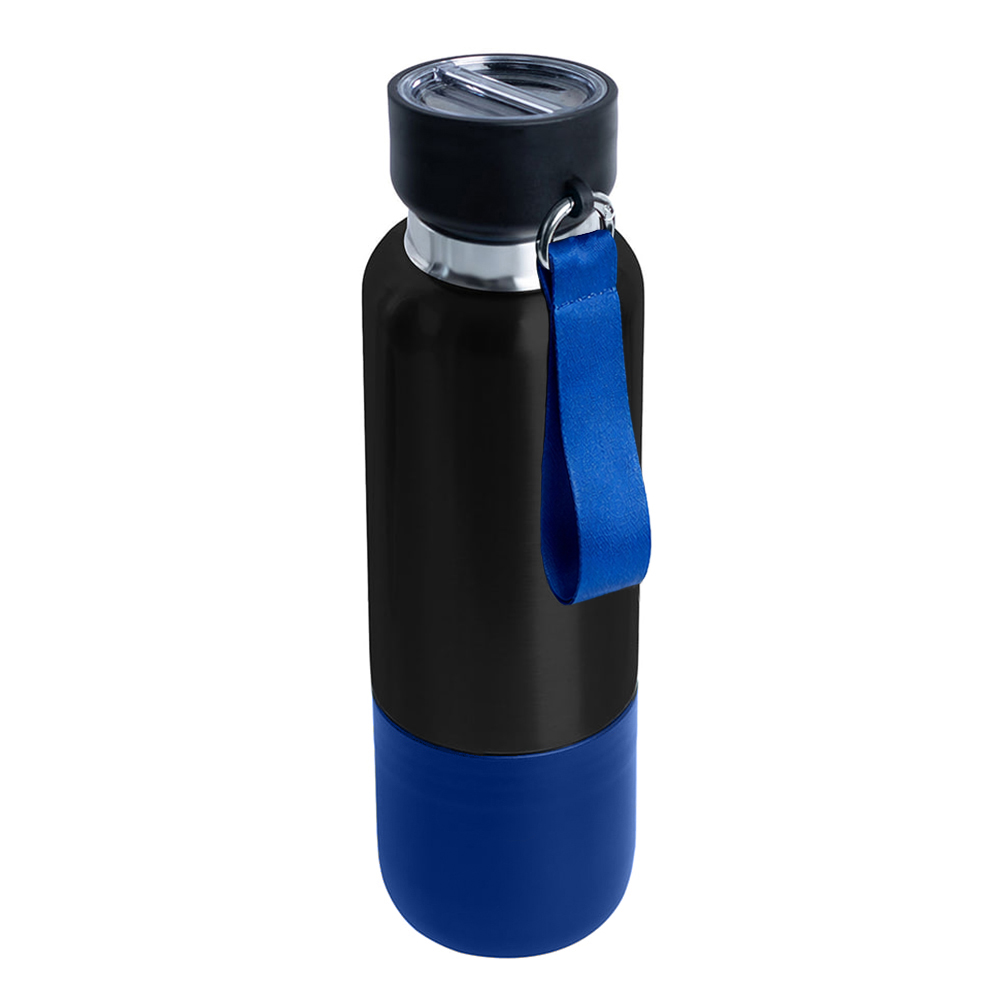 Термос Hike c ланьярдом и манжетой, чёрный-синий можно заказать в нашей компании по самой доступной цене от 1 204.44 рублей.