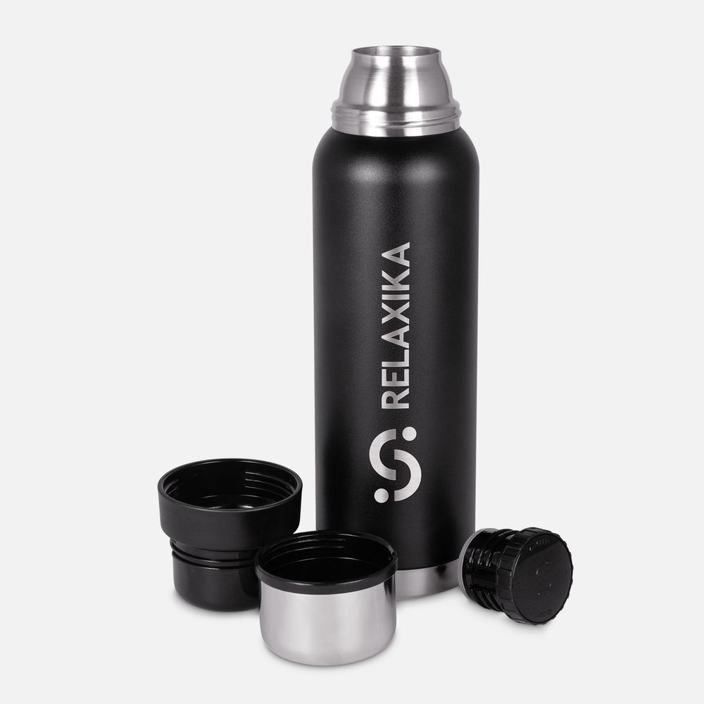Термос Relaxika 1000 со стикерпаком, черный можно заказать в нашей компании по самой доступной цене от 2 295 рублей.