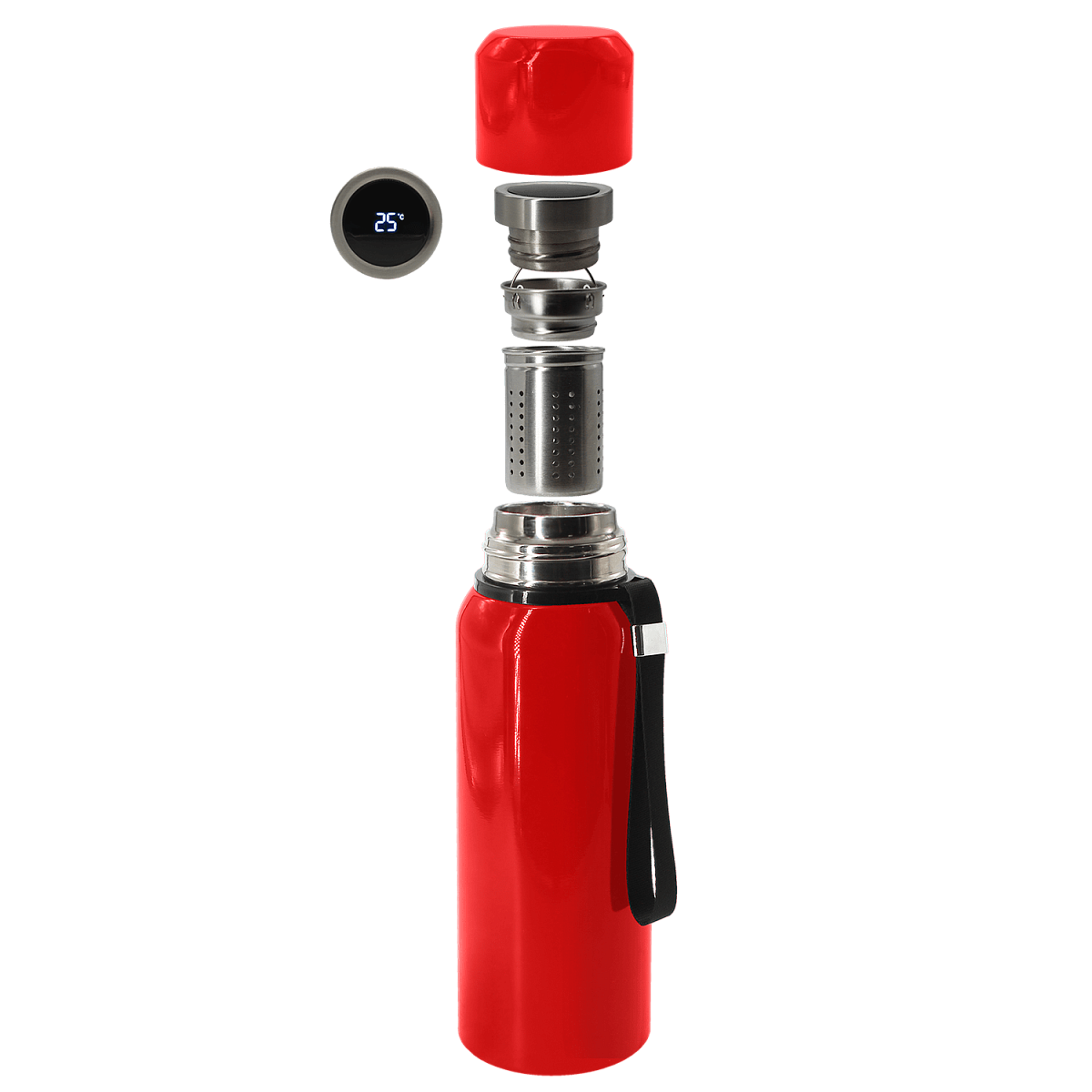 Термос выполнен из пищевой стали и сохраняет напиток горячим до 24 часов и холодным до 36 часов. Также в комплектации 2 съемных ситечка, которые служат двойным фильтром и предотвращают попадание заварки в кружку.