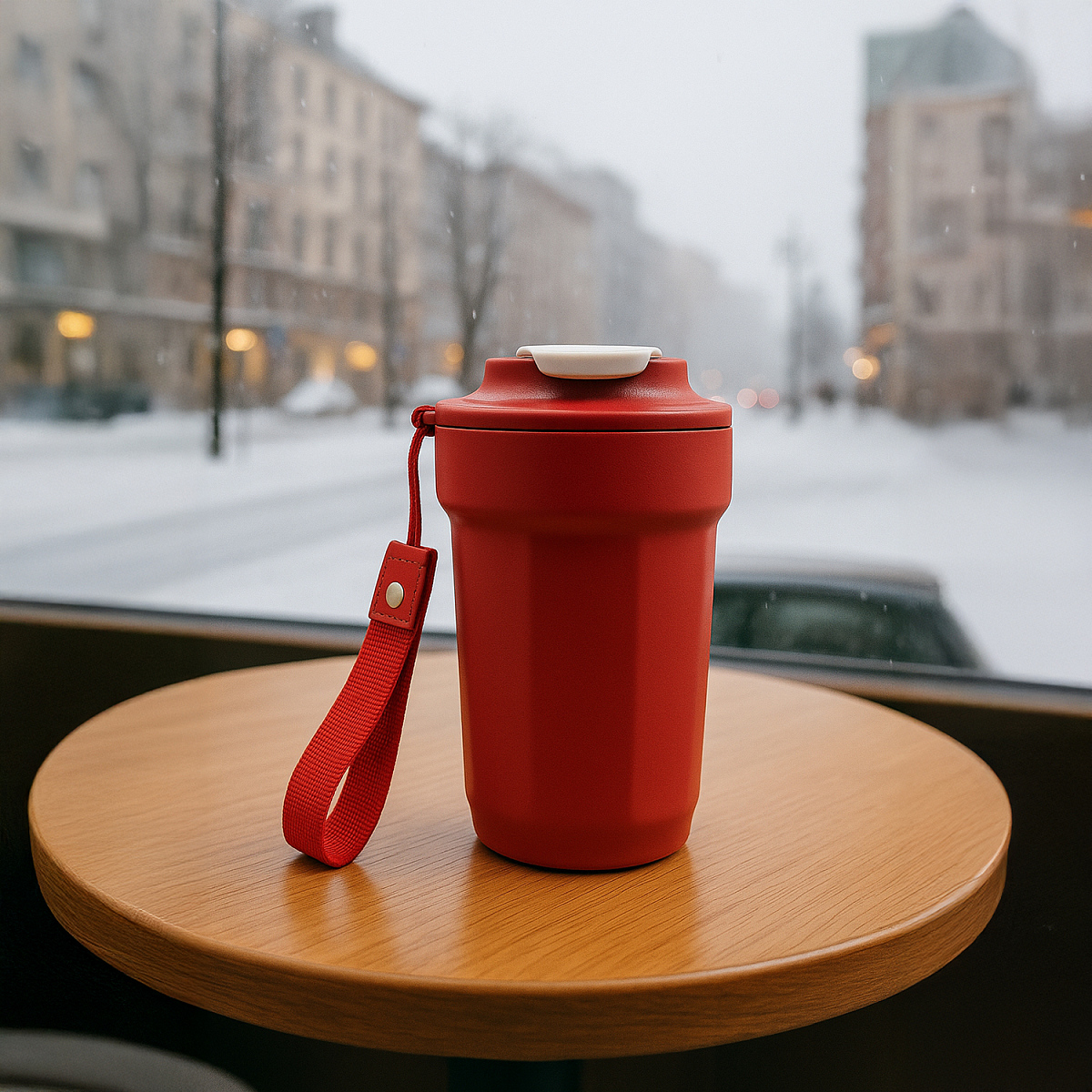Для максимального удобства использования термостакан оснащён съемным текстильным ремешком для переноски. Ремешок в комплекте может быть заменен на трендовую ремувку 4sb flat, на которую можно разместить логотип или слоган компании.