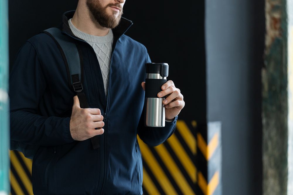 Большой термостакан с герметичной крышкой.
