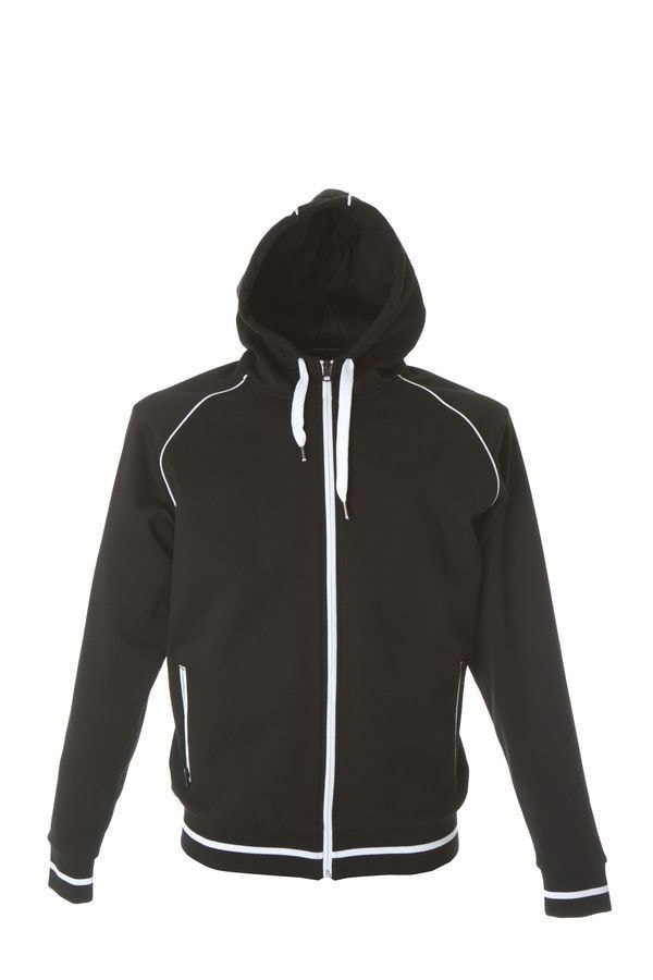 Основная ткань: цвет, близкий к Pantone Standart white Толстовка из полотна "пике" с водоотталкивающей пропиткой. Обратные контрастные молнии для предотвращения попадания влаги внутрь. Рукава-реглан. Декоративная тесьма по горловине спинки. Капюшон на подкладке с небольшой стойкой. Контрастные канты и шнур в капюшоне. Два передних кармана на молнии. Манжеты и низ изделия обработаны плотным рибом 1*1 .