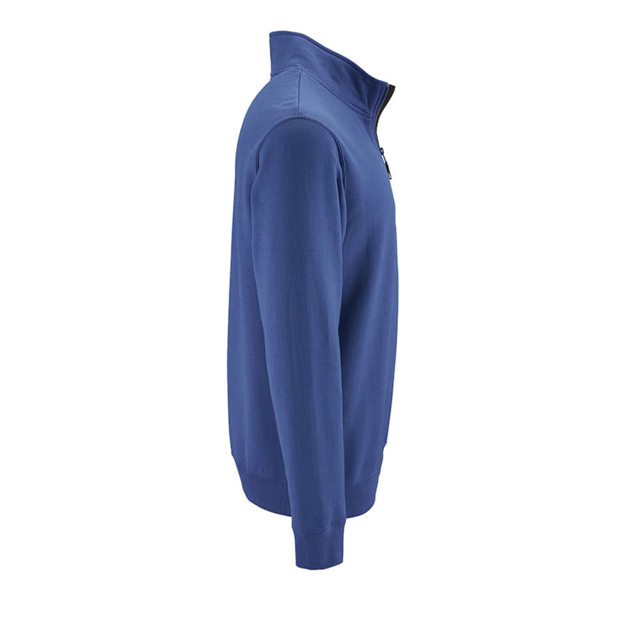 Мужской свитшот с начесом и воротником-стойкой на молнии. Манжеты и низ изделия обработаны резинкой. Внутренняя планка контрастного цвета. Лейбл с размером находится во шве горловины, лейбл производителя вшит в боковом шве изнутри.