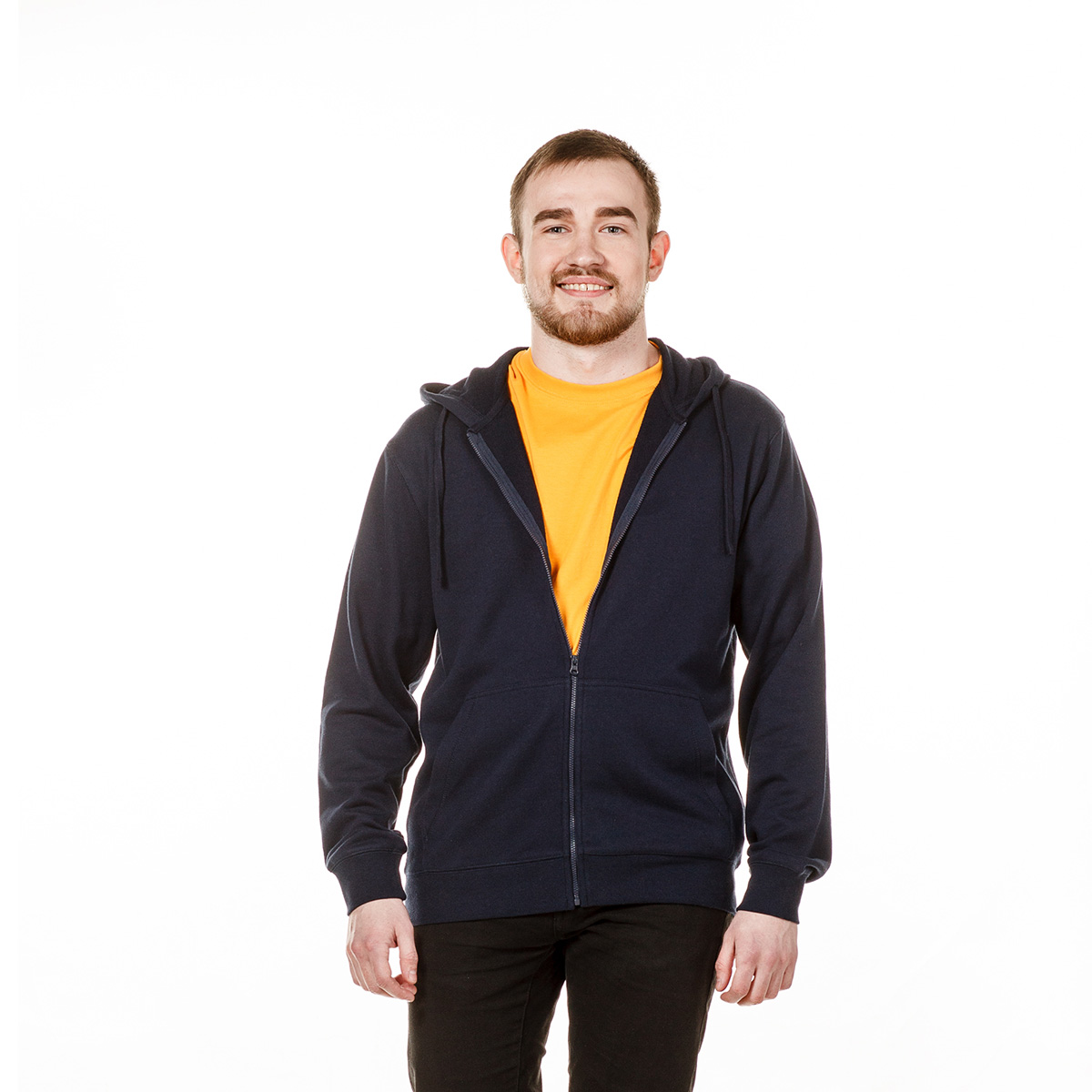 Легкая толстовка с капюшоном на молнии Redfort Forano – классический прямой силуэт с большой свободой облегания, унисекс, низ и манжеты рукавов отделаны эластичной резинкой-рибаной, шнурки и молния в цвет полотна, карман «кенгуру». Полотно «трехнитка», изнаночная сторона - петельчатый футер без начеса. Состав – 60% хлопок, 40% полиэстер. Красители активные, крашение прочное. Полотно малоусадочное. Двойные отделочные швы на плечах, вокруг проймы, на капюшоне и карманах. Каждое изделие имеет индивидуальную упаковку.