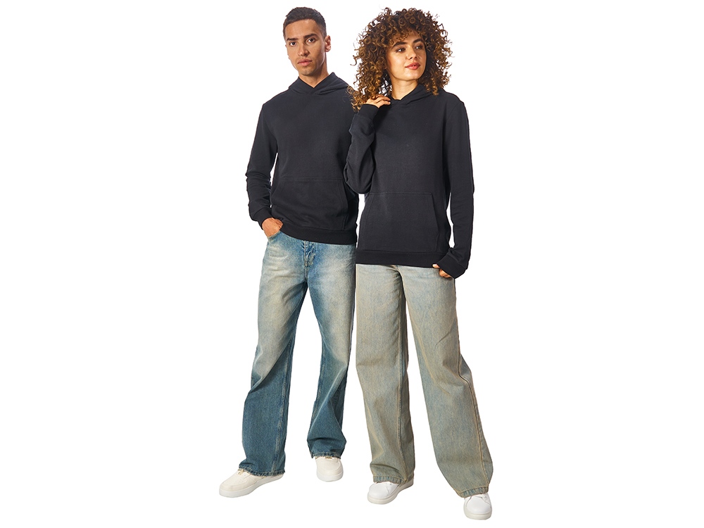 Толстовка с капюшоном (худи) из плотного хлопкового 3х ниточного футера. В капюшоне подкладка в тон, а горловина спинки дополнительно укреплена тесьмой с выделкой елочка. Капюшон без шнурков – ничего не отвлекает от вашего брендирования. Манжеты и низ изделия отделаны рибом 2х2. Глубокий комфортный карман кенгуру на полочке. Полотно из утяжеленного хлопкового футера внутри с петельками без начеса.