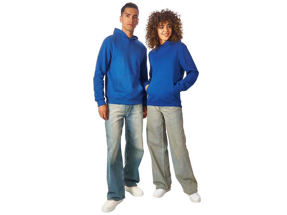 Толстовка с капюшоном (худи) из плотного хлопкового 3х ниточного футера. В капюшоне подкладка в тон, а горловина спинки дополнительно укреплена тесьмой с выделкой елочка. Капюшон без шнурков – ничего не отвлекает от вашего брендирования. Манжеты и низ изделия отделаны рибом 2х2. Глубокий комфортный карман кенгуру на полочке. Полотно из утяжеленного хлопкового футера внутри с петельками без начеса.