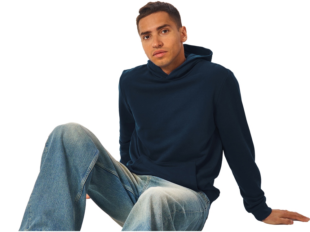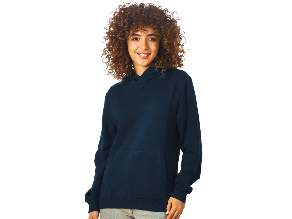 Толстовка с капюшоном (худи) из плотного хлопкового 3х ниточного футера. В капюшоне подкладка в тон, а горловина спинки дополнительно укреплена тесьмой с выделкой елочка. Капюшон без шнурков – ничего не отвлекает от вашего брендирования. Манжеты и низ изделия отделаны рибом 2х2. Глубокий комфортный карман кенгуру на полочке. Полотно из утяжеленного хлопкового футера внутри с петельками без начеса.