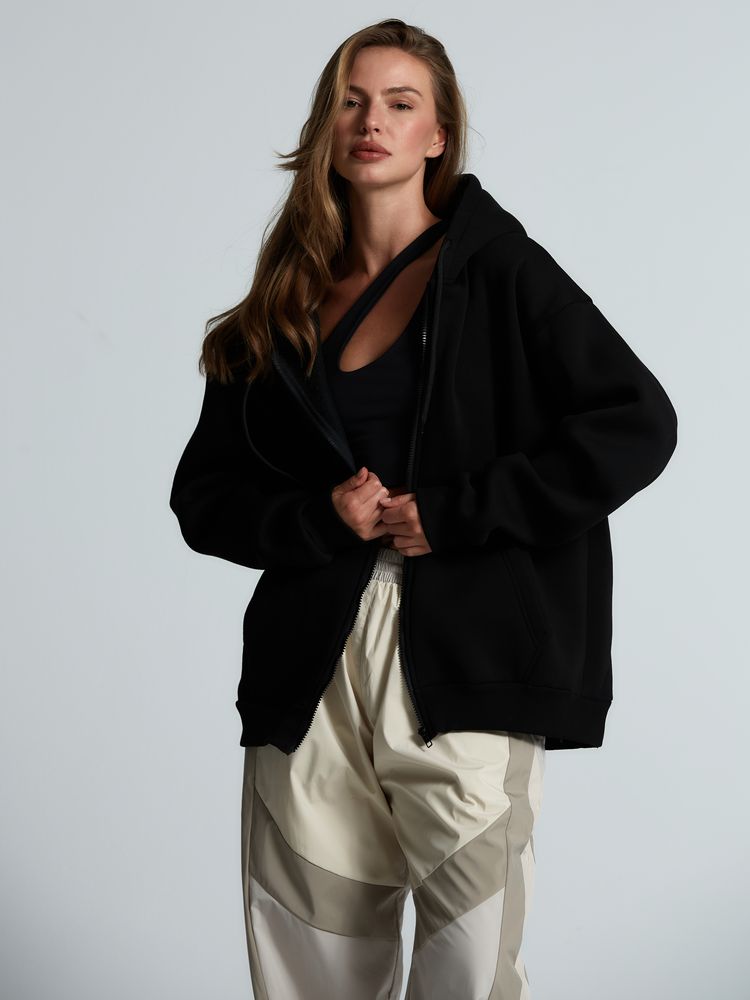 Толстовка унисекс оверсайз Zippy, черная можно заказать в нашей компании по самой доступной цене от 3 860 рублей.