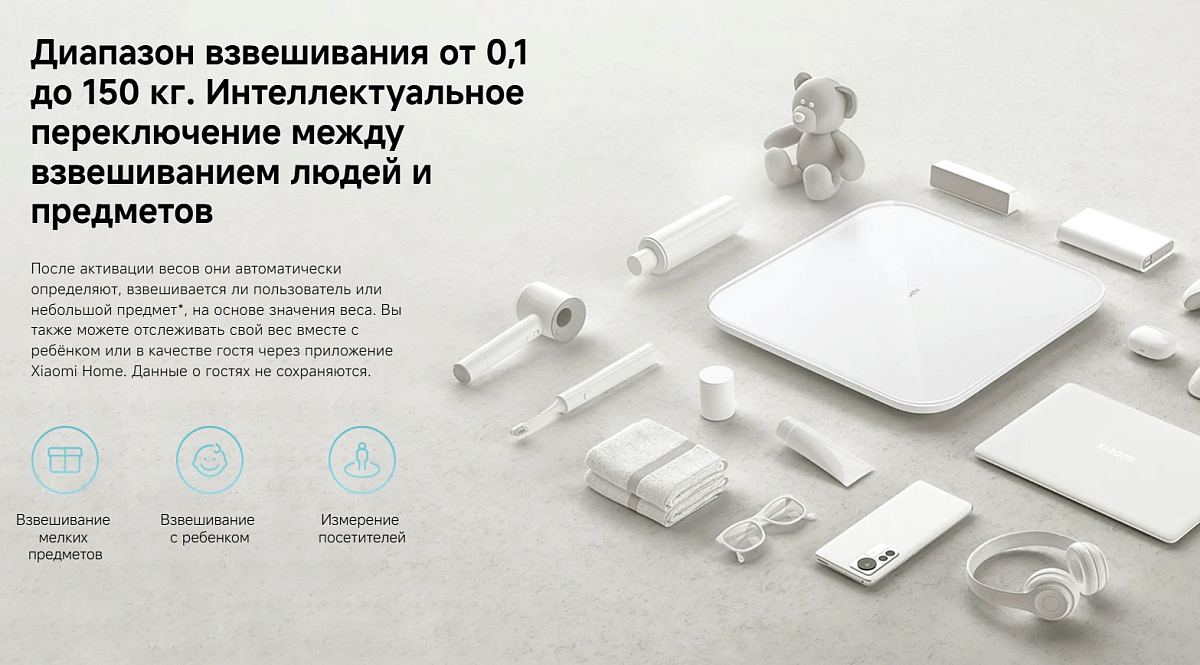 Особенности: умные весы Xiaomi Smart Scale S200 оснащены датчиком из марганцевой стали в форме буквы E с минимальным шагом измерения 0,05 кг; синхронизация с Android 8 или iOS 12 и выше; взвешивайте людей и предметов; сверхдлинный срок службы батареи; смарт-весы Xiaomi S200 можно подключить к приложению Xiaomi Home и хранить информацию для 36 пользователей; весы не только измеряют ваш вес, ИМТ и другие показатели тела в режиме реального времени, но и рассчитывают ваш идеальный вес на основе вашего роста и возраста, а также дают рекомендации по контролю веса, чтобы снизить риски для здоровья, связанные с нездоровыми диетами и резким похудением
