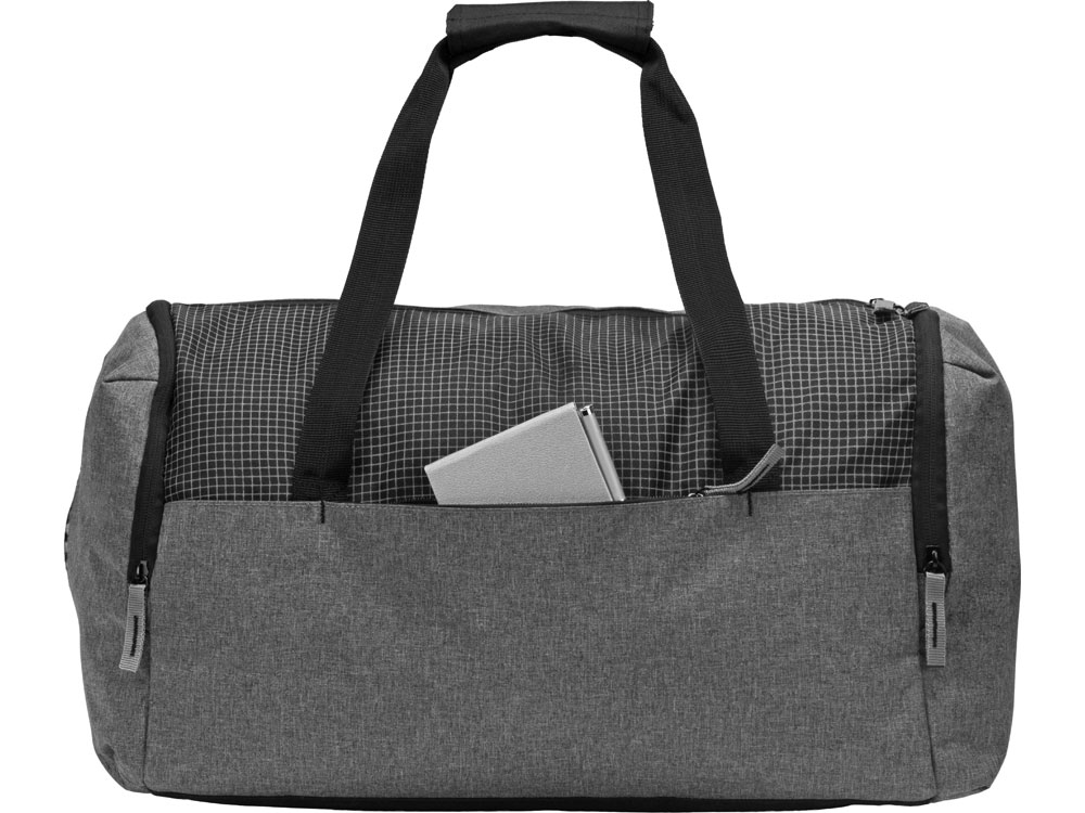 Благодаря вставке со светоотражающими элементами сумка будет заметна и обеспечит дополнительную защиту даже в темное время суток. Легка и очень вместительная, с наружным и боковым карманами на молнии. Отделение для хранения обуви с вентиляционным клапаном. Ручки фиксируются вместе застежкой -липучкой.