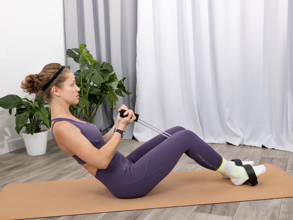 - Удобные прорезиненные ручки для рук и упоры для ступней,